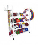 Keep your gym organized with this cart. Made of durable plastic, and equipped with heavy-duty swivel casters, this versatile equipment cart can be maneuvered out of the way whenever you want to free up more floor space. The cart features four tiers that can hold up to 32 basketballs or 40 soccer balls, 150 jump ropes, and 48 hoops. This handy cart helps organizes and transports sports equipment with ease.