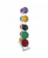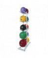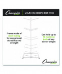 Designed to save space in gyms and fitness classes, the Champion Sports Double Medicine Ball Tree features a vertical design, making it easy to fit almost anywhere in your workout space. This medicine ball tree is made with steel tubing, which offers exceptional strength and stability, holding up to 10 medicine balls of various sizes and weights. Does not hold medicine balls of larger diameter.