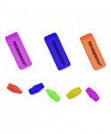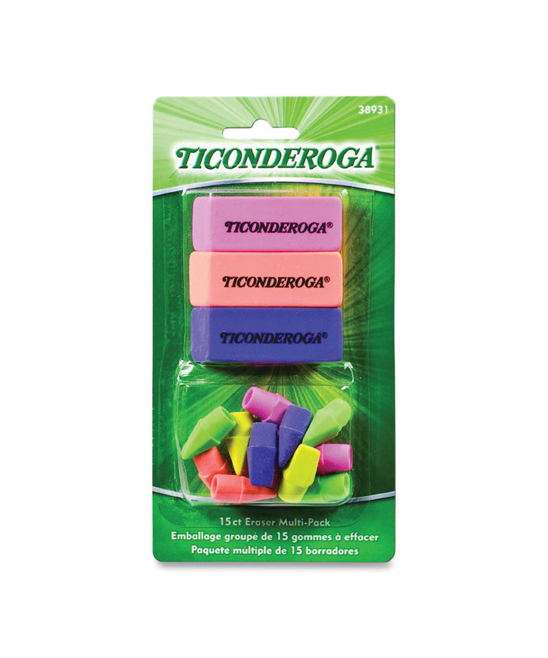 Includes three beveled erasers and 12 wedge cap erasers all in fun bright colors. Chisel shaped wedge cap eraser is made to fit over the end of any standard diameter pencil. Exceptional quality pliable pencil erasers feature smudge-free corrections every time.