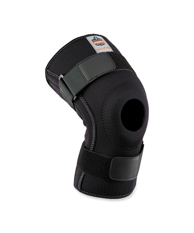 The ProFlex 620 Neoprene Compression Knee Sleeve with open patella and spiral stays provides comfortable knee and joint support on and off the worksite. The perforated neoprene stretch fabric compresses the knee to improve blood flow, aiding in pain relief and joint flexibility. This knee sleeve is a great solution for reducing pain and increasing productivity, particularly for those frequently kneeling on the job. This comfortable latex-free knee compression sleeve is made with a breathable perforated neoprene that does not limit range of motion, plus foam buttress padding around the open kneecap for enhanced comfort and support. Spiral stays provide additional stability and support along either side of the knee to aid with side-to-side movement. Thinner neoprene paneling behind the knee reduces bulk and discomfort when bending or kneeling.