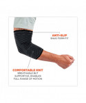The ProFlex 651 Elbow Compression Sleeve provides breathable comfort and support to relieve elbow pain on and off the worksite. The elbow sleeve compresses the joint to improve blood flow and reduce swelling. It also lends support for an improved sense of joint stability. Increase productivity by reducing pain and accelerating injury recovery with this elbow compression sleeve. Both breathable and supportive, the durable knit compression material also enables full range of motion for all-day comfort. The compression arm sleeve easily slides on over the elbow and the knit pattern provides a snug, anti-slip fit while in use. It is gray with black accents for a low-profile wear. To determine ideal size, measure the circumference four inches above your elbow joint. If you are between sizes, go down for increased compression and up for reduced compression.