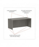 Durable, commercial grade laminate work surface and side panels are water, scratch, and stain resistant. The charcoal accent line under the work surface adds style and a distinctive touch. A protective edge banding helps to prevent damage from bumps. Two grommets for cable and wire management. Full-length modesty panel for added privacy.