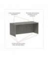 Durable, commercial grade laminate work surface and side panels are water, scratch, and stain resistant. The charcoal accent line under the work surface adds style and a distinctive touch. A protective edge banding helps to prevent damage from bumps. Two grommets for cable and wire management to tuck away your computer and device cords. Full-length modesty panel for added privacy.