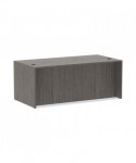 Durable, commercial grade laminate work surface and side panels are water, scratch, and stain resistant. The charcoal accent line under the work surface adds style and a distinctive touch. A protective edge banding helps to prevent damage from bumps. Two grommets for cable and wire management. Full-length modesty panel for added privacy.