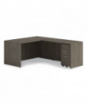 This desk shell is a centerpiece to your office setup, designed to pair seamlessly with returns, pedestal or credenzas for creating efficient L-shaped or U-shaped workstation configurations. Made from durable particleboard, this extension features a band edge design that adds strength and durability to its construction. The surface is finished with high-quality laminate that not only offers a sleek, professional look but also provides excellent resistance to impacts and burns, ensuring long-lasting use in busy office environments. Equipped with adjustable glides that allow for easy leveling on uneven surfaces, ensuring stability and comfort.