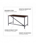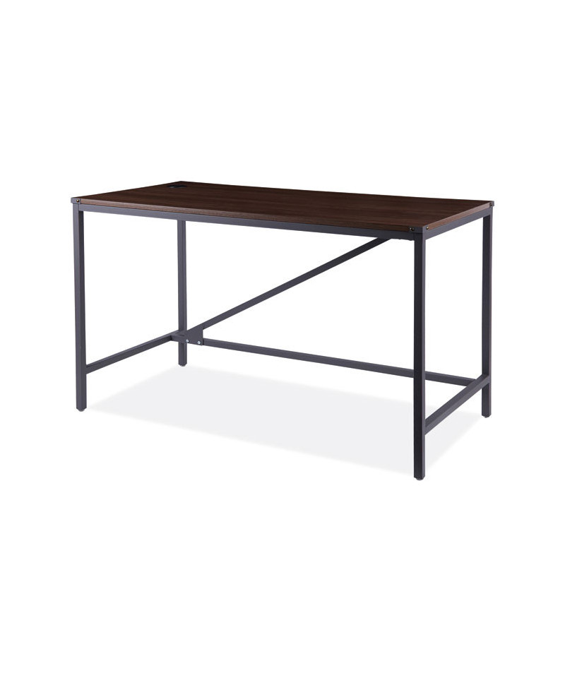 Modern, industrial style desk provides a clean and compact workspace that's perfect for the home or small office. Use it as a table, writing desk, or computer station to create a productive workspace in smaller areas. Attractive, durable laminate top with squared steel powder coated legs. The cross-stability bar adds style and prevents rocking to ensure a stable feel. Leveling glides included to adjust for uneven floors.