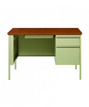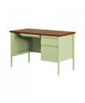 Solid and stable desk with square edge laminated top that is scratch- and stain-resistant. Built with a durable, powder-coated steel frame with 1" square tubular steel legs. Standard features include full extension ball-bearing drawer slides for smooth drawer action, central locking center drawer, and a strong laminate wood top. Desks ship fully assembled except for the legs. All necessary hardware to attach the legs is included. Designed to meet or exceed ANSI-BIFMA industry standards for performance and workmanship.