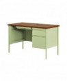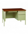 Single Pedestal Steel Desk, 45" x 24" x 29.5", Cherry/Putty