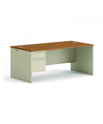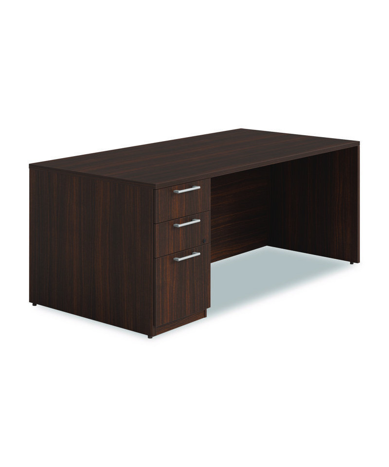 A thoughtfully designed piece that offers both functionality and style for any office environment. Equipped with one pedestal, this desk maximizes storage space to keep your workspace organized and clutter-free. The laser edge band construction enhances durability for long-lasting use. Crafted from particleboard, the desk is finished with a laminate and thermofused melamine (TFM), combining both strength and aesthetics. The premium laminate is resistant to burns and impacts, making this desk ideal for a high-traffic office setting. Its surface is designed to withstand the daily wear and tear of a busy work environment, ensuring that it maintains its sleek appearance over time. Adjustable glides provide stability on uneven flooring, ensuring a level surface no matter where the desk is placed.