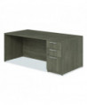A thoughtfully designed piece that offers both functionality and style for any office environment. Equipped with one pedestal, this desk maximizes storage space to keep your workspace organized and clutter-free. The laser edge band construction enhances durability for long-lasting use. Crafted from particleboard, the desk is finished with a laminate and thermofused melamine (TFM), combining both strength and aesthetics. The premium laminate is resistant to burns and impacts, making this desk ideal for a high-traffic office setting. Its surface is designed to withstand the daily wear and tear of a busy work environment, ensuring that it maintains its sleek appearance over time. Adjustable glides provide stability on uneven flooring, ensuring a level surface no matter where the desk is placed.