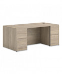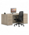 Hard-working, good-looking and built to survive a lifetime of overtime. Thermally-fused laminate top and end panels are abrasion- and stain-resistant. Drawers operate on ball bearing suspensions; file drawers extend fully and accommodate letter or legal size hanging files, box drawers extend three-quarters. HON® "One Key" core removable locks make re-keying quick and easy. Full-height modesty panel for privacy. Two cord management grommets.