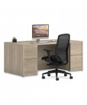 One box/file drawer in each locking pedestal. Full-height modesty panel provides privacy. Two wire grommets for convenient cord management.