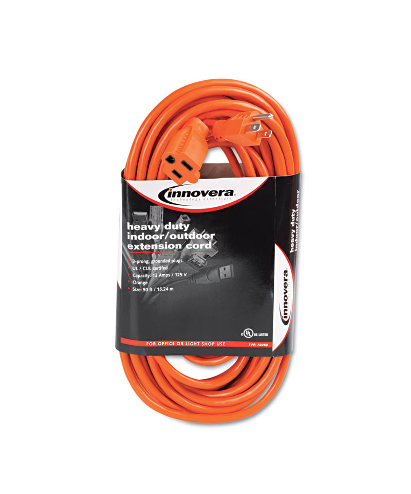 Power up your workspace with the Innovera® indoor/outdoor heavy-duty extension cord. This grounded, cord delivers robust 13 A/120 V performance. Best for garage, shop or light industrial use. Rugged yet managable design offers a reliable and compliant solution. Dependable addition to any indoor or outdoor environment. Bright color stands out for safety.