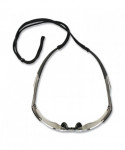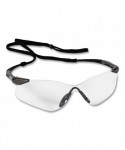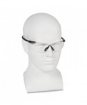 Ultra-lightweight frameless design. No-brow design increases upwards peripheral vision and limits interference with hard hat suspension systems. Polycarbonate lenses provide 99.9% UVA/UVB/UVC protection to help prevent eye damage like cataracts, retinal damage, and other conditions that can cause temporary vision loss. The wraparound frame has a base curve of 8.25 that extends the range of peripheral protection, as well as soft touch temples for comfort. Each pair of glasses come with a neck cord for securing them, so that the glasses are ready to protect at a moment's notice. The safety eyewear is manufactured to comply with the ANSI / ISEA Z87.1+ standard for personal eye protection.