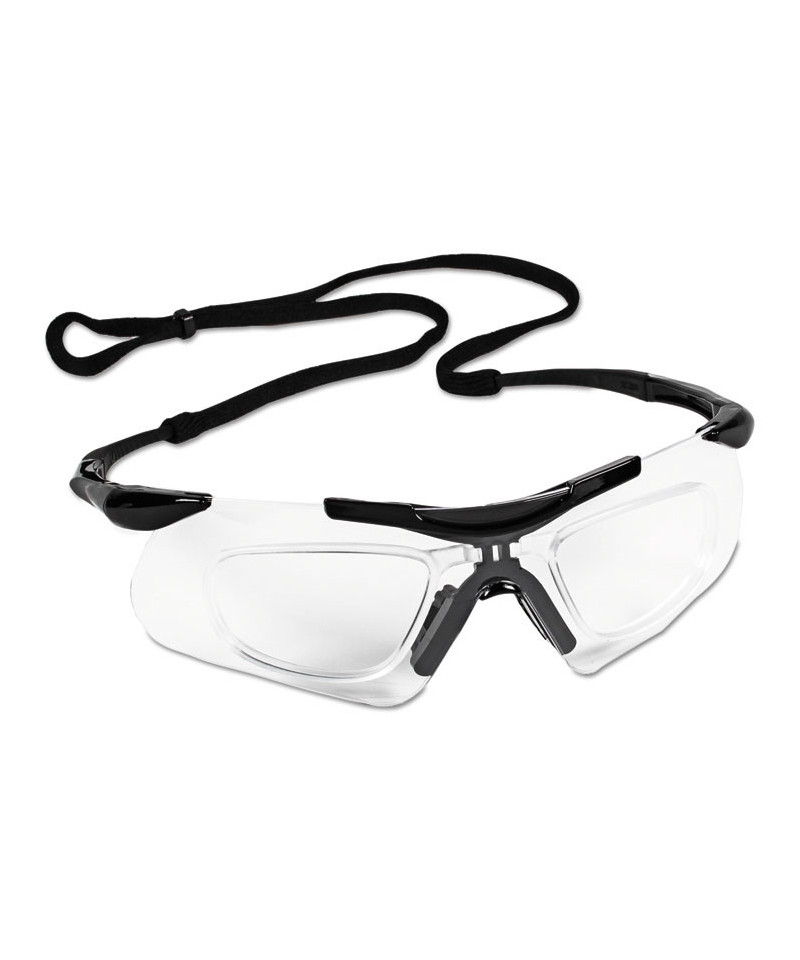 Safety eyewear with integral diopters for vision assistance allows clearer vision. Larger wraparound lenses cover more area for increased safety. Precise placement of diopter insert creates distortion-free visibility. Enhanced nose piece design features integrated ridges to channel sweat for a more comfortable experience. Lenses provides 99.9% UV protection.