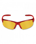 Stylized frame features a cutting edge design that is ideal for work and play. Sport grip temples eliminate slippage. Dual lenses with an 8-base curve provide wrap-around protection.