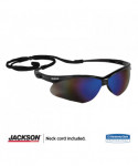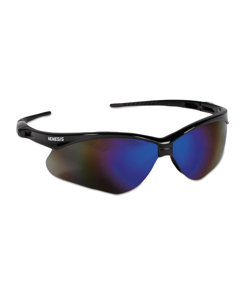 Nemesis Safety Glasses, Black Half Frame, Mirrored Blue Dual Lens