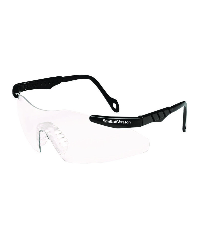 Ergonomically designed eyewear with three-point fit for ultimate comfort. Built-in hinge stops help minimize scratches and keep glasses attractive. Self-adjusting rubber nose pad with rubber fingers creates a comfortable fit for almost any wearer. Sturdy, polycarbonate lenses offer 99.9% UV protection. Eyewear meets ANSI Z87.1+ impact standard.
