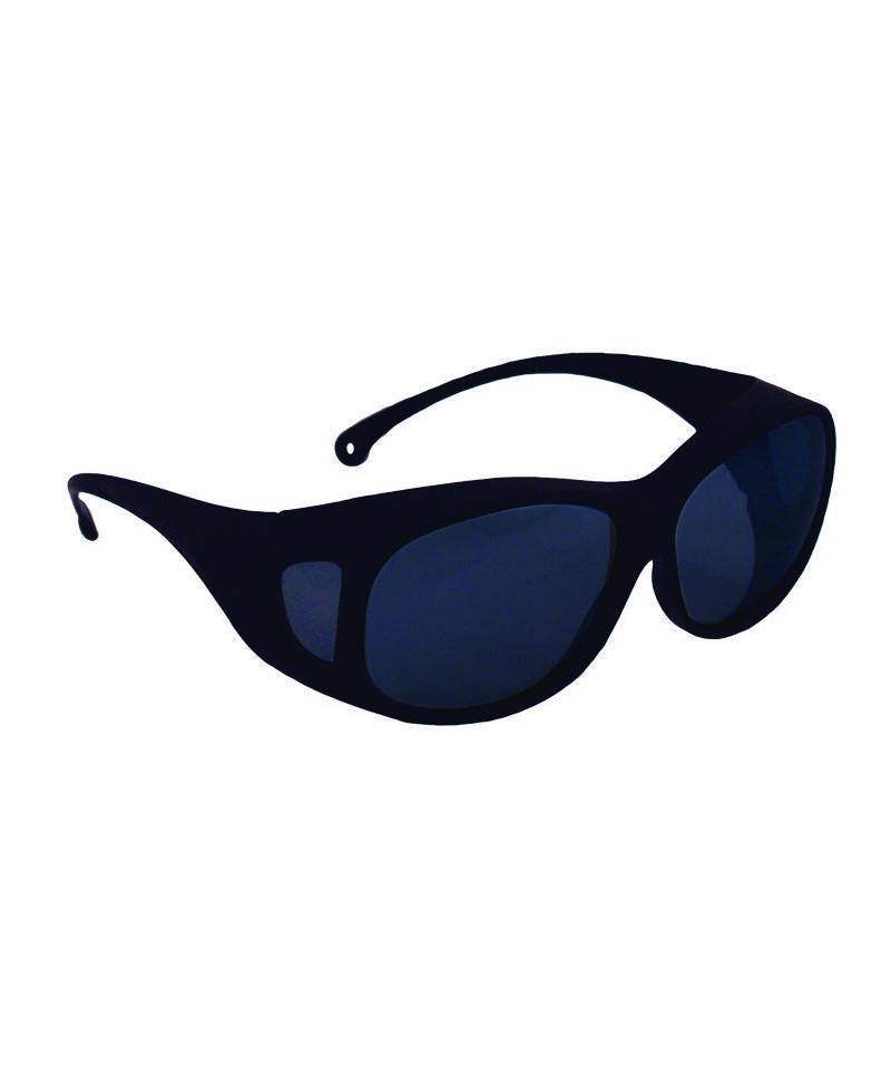 Stylish safety eyewear is designed to fit over most prescription eyeglasses. Integral side shields offer increased protection. Lenses offer 99% UV protection.