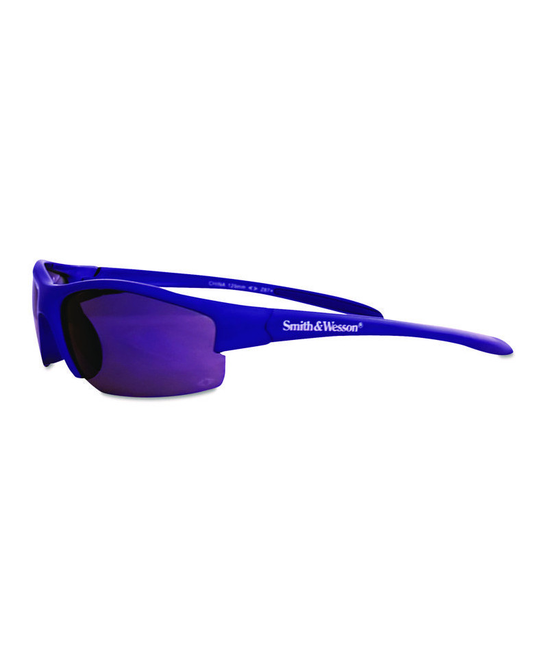 Stylish safety glasses have a modern, cutting edge design. Soft, rubber nose pads for superior comfort and fit. Dual lenses with an 8-base curve offer wraparound protection. Sport-grip temples eliminate slippage and help glasses sit comfortably. High performance polycarbonate lenses provide 99.9% UV protection. Safety eyewear meets ANSI Z87.1+ impact standard.