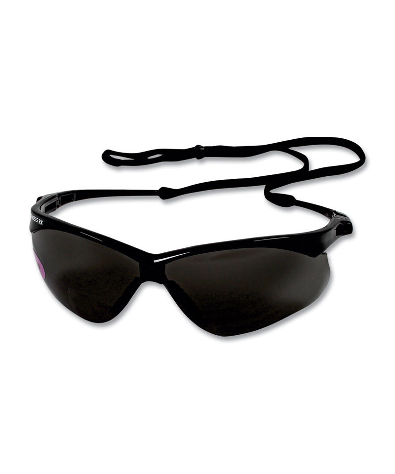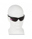 Safety eyewear with integral diopters for vision assistance allows clearer vision. Larger wraparound lenses cover more area for increased safety. Precise placement of diopter insert creates distortion-free visibility. Enhanced nose piece design features integrated ridges to channel sweat for a more comfortable experience. Lenses provides 99.9% UV protection.
