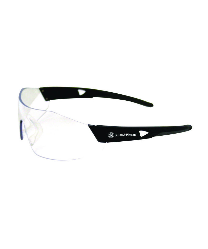 Do you need safety glasses that are designed to transition seamlessly from work to recreation? Smith & Wesson® 44 Magnum Safety Glasses provide all-day comfort and protection, in comfort and style. The minimal black frames hold clear one-piece lenses, for maximum visible light transmission. The safety glasses have a 4c x 7c base curve, which gives you the benefit of the lens hugging your face both side-to-side and up-and-down. They are also scratch-resistant and feature an anti-fog coating for use in humid environments. They are built for comfort, with soft touch rubber temples that contour around the head, a flexible nose piece that conforms to various nose shapes, and air vents on the temples to maximize air flow. These glasses provide 99.9% UVA/UVB/UVC protection and meet both ANSI Z87.1+ standards for high impact. No matter where you're using them, Smith & Wesson® Caliber Safety Glasses help deliver the comfort and protection you need.