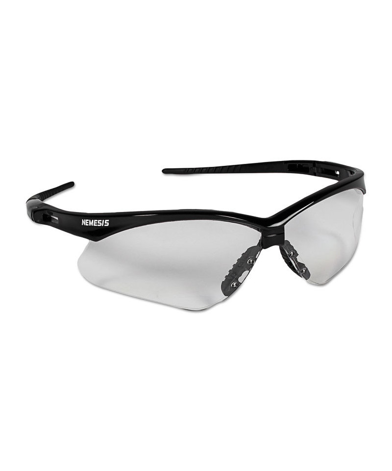 KleenGuard™ Personal Protective Equipment (PPE) enables rather than inhibits allowing for maximum productivity and safety for you and your employees. Giving your employees what they need to do their job safely and effectively is a top priority of any business owner. KleenGuard™ Nemesis Safety Eyewear's stylish good looks and durable, lightweight construction are just some of the reasons why millions of people wear them for protection both at work and at home. Nemesis Safety Glasses have KleenVision™ Anti-Fog coated polycarbonate lenses that provide 99.9% UVA/UVB/UVC protection to help prevent eye damage like cataracts, retinal damage, and other conditions that can cause temporary vision loss. The wraparound frame has a base curve of eight that extends the range of peripheral protection, as well as soft-touch temples for comfort. The Nemesis safety glasses have a patented nose piece designed to be extremely flexible, to channel sweat away from the eyes, and to help prevent slippage down the nose, all for long-term comfort. Each pair of KleenGuard™ Nemesis safety glasses come with a neck cord for securing them, so that the glasses are ready to protect at a moment's notice. Both men and women will find these stylish glasses to be comfortable and functional for construction, manufacturing, shooting range and a host of other industries. Remember: comfort and style drive compliance, so it pays to provide comfortable designer glasses that your staff will be proud to wear. Making the right Personal Protection choice is difficult. Perform with distinction with KleenGuard™ Personal Protective Equipment (PPE).