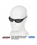 Safety glasses feature a streamlined, modern style for a sunglass-like appearance. Extremely lightweight design makes them comfortable for extended wear. Durable, high-performance polycarbonate lenses. Flex point temples increase comfort and stability. Glasses meet ANSI Z87.1+ standard for impact resistance.