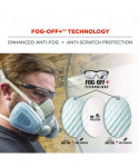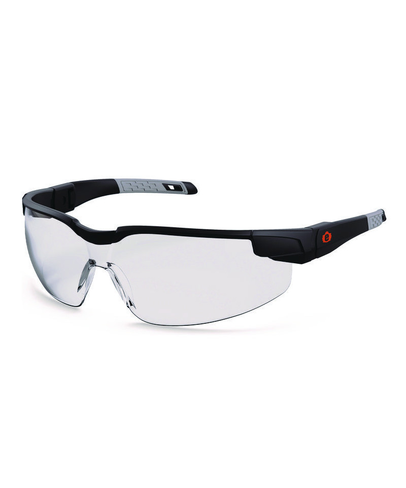 These safety glasses feature adjustable temples that shift up or down and lock into place for a custom fit on a variety of face sizes. Tough anti-scratch and anti-fog polycarbonate lenses protect against impacts and filter 99.9 percent of harmful UVA, UVB and UVC rays. The rimless design makes for a lightweight and comfortable fit and maximizes a full field of vision. A contoured nose bridge won't slip or pinch and the flex-fit temples reduce pressure and provide stay-put all-day comfort. The lens features Fog-Off+ technology for durable scratch-resistance and enhanced permanent anti-fog performance that won't wash or rub off for clear viewing no matter the job-particularly useful for those working with dust masks or in extreme temperature change. UV protection filters 99.9 percent of har