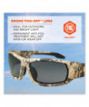 The SkullerzĀ® Odin Safety Glasses take their name from the king of the Norse Gods. These full-frame, protective work safety sunglasses feature tough scratch-resistant lenses filter 99.9 percent of harmful UVA, UVB and UVC rays to keep your eyes safe in the sun. The durable frames bend and flex without breaking. A non-slip rubber nose piece and rubber temples keep the glasses secure and resist sweat. An elastic retainer strap or foam gasket insert can be attached to the temples. They offer high-velocity impact protection and ballistic fragmentation protection, which is the U.S. Military Combat Eye Protection System Performance Specification for eyewear.