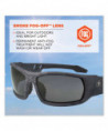 The SkullerzĀ® Odin Safety Glasses take their name from the king of the Norse Gods. These full-frame, protective work safety sunglasses feature tough scratch-resistant lenses filter 99.9 percent of harmful UVA, UVB and UVC rays to keep your eyes safe in the sun. The durable frames bend and flex without breaking. A non-slip rubber nose piece and rubber temples keep the glasses secure and resist sweat. An elastic retainer strap or foam gasket insert can be attached to the temples. They offer high-velocity impact protection and ballistic fragmentation protection, which is the U.S. Military Combat Eye Protection System Performance Specification for eyewear.
