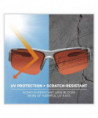 Sleek half frame™ blade style™ safety glasses are an excellent choice for everyday safety. Designed with coinjection rubber temples and a non-slip nose piece. Scratch-resistant lens blocks 99.9% of harmful UV rays. Temple accessory slot improves air flow.
