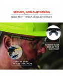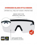 Skullerz AEGIR Safety Glasses feature an oversized blade-style design to provide superior eye protection and maximized field of vision. These protective safety glasses feature polycarbonate lenses to protect against impacts and filter 99.9 percent of harmful UVA, UVB and UVC rays. The high-strength frame is built for durability and the rubberized nose bridge and temples offer non-slip security and resist sweat for all-day comfort. To provide a custom fit, the rubber temples can be easily bent and re-bent to accommodate a variety of head shapes and fit preferences. Impact resistant. Great for protecting your eyes during outdoor work like construction and landscaping as well as carpentry and woodworking.