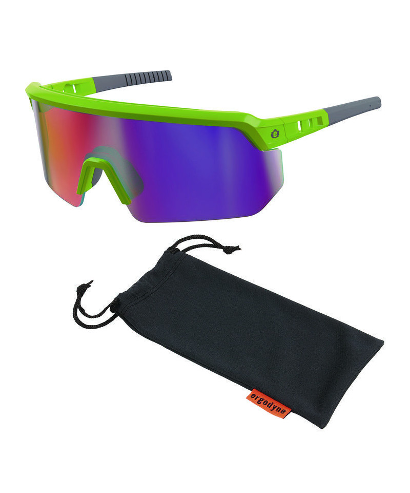 Skullerz AEGIR Anti-Scratch Enhanced Anti-Fog Safety Glasses, Lime Half Frame, Mirrored Purple Single Lens