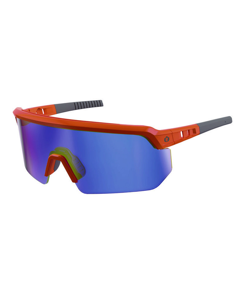 Skullerz AEGIR Anti-Scratch Enhanced Anti-Fog Safety Glasses, Orange Half Frame, Polarized Mirrored Blue Single Lens