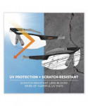 Skoll safety glasses are named after the Norse Wolf God of Sun and Moon. These protective work safety sunglasses feature tough scratch-resistant lenses filter 99.9 percent of harmful UVA, UVB and UVC rays to keep your eyes safe in the sun. The blade-style design is a sleek and sporty look with all the features you've come to expect from Skullerz® Eye Protection at an outstanding value. The durable frames bend and flex without breaking. Flexible rubber temples and non-slip nose piece offer a non-slip, comfortable fit. These impact-resistant safety glasses also offer high velocity protection.