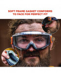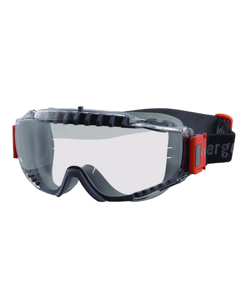 These safety goggles feature an oversized, wrap-around lens for a wide field of vision and seamless fit over prescription frames. The lens features Fog-Off+ technology for durable scratch-resistance and enhanced permanent anti-fog performance that won't wash or rub off for clear viewing no matter the job-particularly useful for those working with dust masks or around extreme changes in temperature. The soft gasket lining forms to the wearer's face for a comfortable, customized fit while sealing out dust, debris and particles. The vented frame allows for airflow and improved anti-fog performance. The soft, woven elastic strap is adjustable and comfortably secures on heads, hard hats or caps.