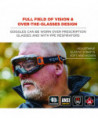 The Skullerz MODI Over-the-Glasses (OTG) Anti-Scratch and Enhanced Anti-Fog Safety Goggles feature an oversized, wrap-around lens for a wide field of vision and seamless fit over prescription frames. The lens features Fog-Off+ technology for durable scratch-resistance and enhanced permanent anti-fog performance that won't wash or rub off for clear viewing no matter the job-particularly useful for those working with dust masks or around extreme changes in temperature. The soft gasket lining forms to the wearer's face for a comfortable, customized fit while sealing out dust, debris and particles. The vented frame allows for airflow and improved anti-fog performance. The soft, woven elastic strap is adjustable and comfortably secures on heads, hard hats or caps. Hand wash with mild soap, water and Skullerz 3216 Microfiber Cleaning Cloth (sold separately).