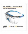 3M® Pressure Diffusion Technology allows temples to naturally adjust to individual head sizes, eliminating the need to stock multiple frame sizes at worksites. Secure, snug fit keeps eyewear in place without slippage even when the wearer is in motion. Anti-fog coating helps keep lenses free of moisture in hot and humid conditions. Polycarbonate lenses absorb 99.9% UVA and UVB up to 380 nm.