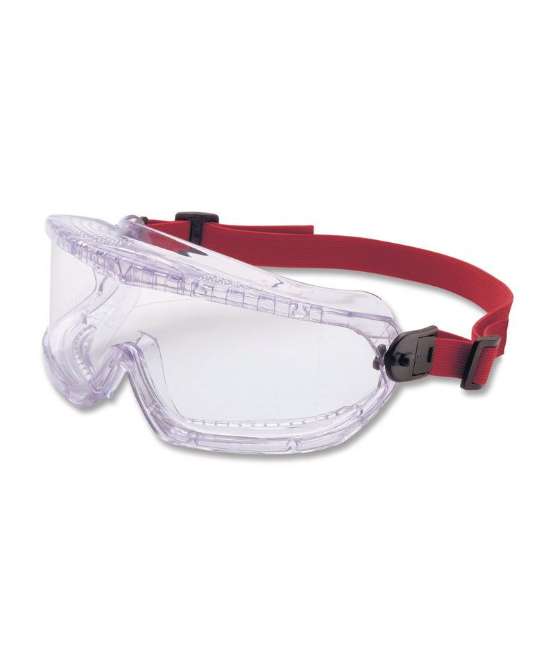 Sporty-style safety goggles feature sleek wraparound style that helps to provide 180° clear field of vision. Ideal for foggy environments. Highly durable goggles provide good range of comfort for a variety of users. Adjustable headband keep goggles secure.