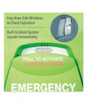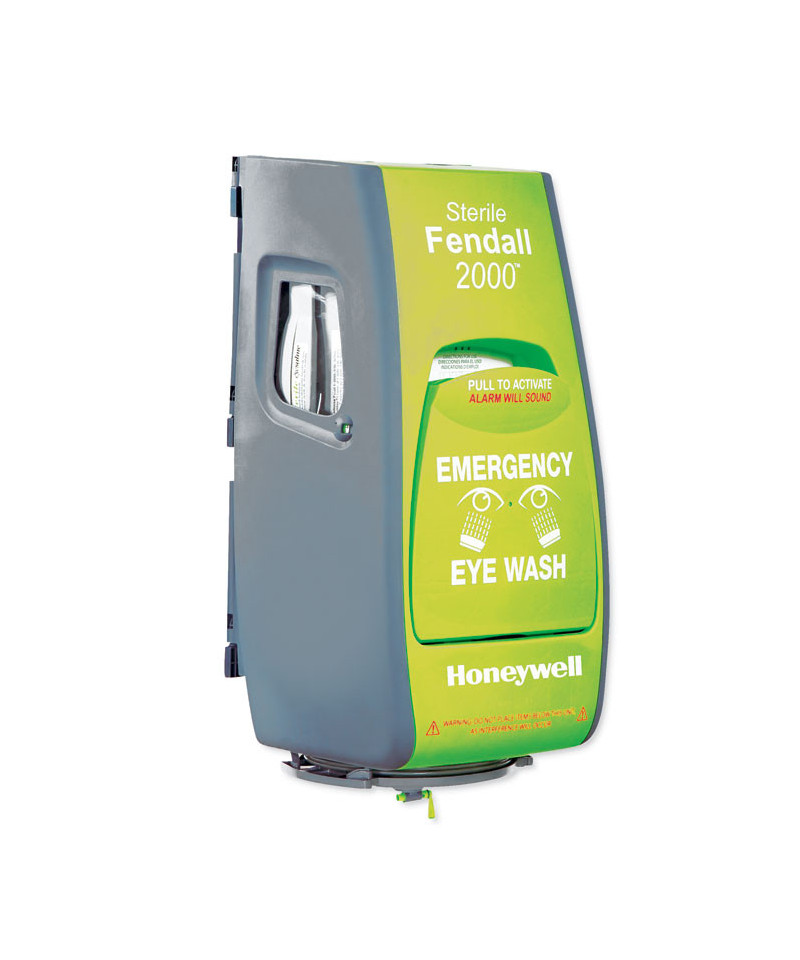 Fifteen-minute 100% sterile eye wash station. Alarm sounds upon activation and completion of 15-minute flush. Easy to replace cartridge, which has a life of 24 months (sold separately). An integrated waste containment prevents spills and provides easy clean up. Constant flow rate meets ANSI Z358.1-2014 standard for primary eyewash station.