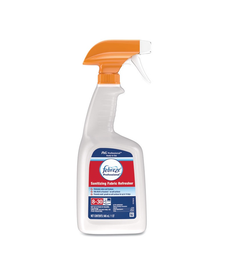 Soft surfaces that can't be washed, such as mattresses and upholstered furniture, are harbors for harmful bacteria, mold and mildew. Febreze Professional Sanitizing Fabric Refresher gives you the same freshening power of Febreze plus the soft surface sanitization your environment needs. Proprietary technology goes to the source of odors and fights them. A light, fresh scent is left behind to leave the treated area smelling fresh and clean. Safe for virtually all fabrics. Spray soft surface until fully wet and the soft surface must remain wet for five minutes.