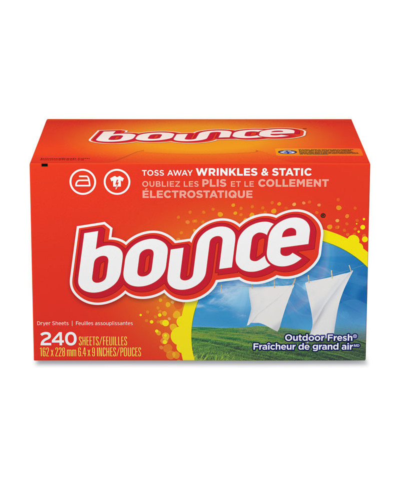 With Bounce® Fabric Softener Sheets, static cling doesn't have to be a thing. These dryer sheets help prevent static build up that occurs in the dryer so you can look and feel your best. America's #1 dryer sheet brand is tough on wrinkles, too. Toss a sheet in the dryer to keep clothes looking their best and reduce wrinkles so your clothes will be ready to wear right away, making you look and feel confident. Bounce® dryer sheets don't stop there. From the moment you pull your laundry out of the dryer, they give your clothes a fresh and lasting scent and a noticeably soft feel. Way less static, fewer wrinkles, softer fabrics, and an outdoor fresh scent is that easy. Toss in two Bounce® dryer sheets for your average loads to iron less, fight more static, and add more softness and freshness. One will do for small loads, and if you're catching up on laundry and have an extra large load, toss in three! You can also use Bounce® dryer sheets around the house. Tuck them in drawers or closets, put them in gym bags and suitcases, or stash them at the bottom of your trashcan to bring that Bounce fresh scent you know and love out of the dryer and into your home.