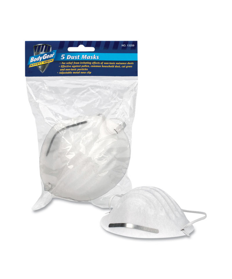 Keep a pack of these disposable masks with you for breathing relief from the irritating effects of nontoxic dusts and airborne particles such as pollen, common household dust and cut grass. Plastic headband and adjustable soft metal nose clip.