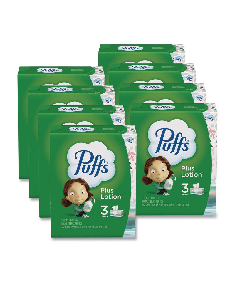 Keep the soothing softness of Puffs® Plus Lotion™ around to ease your sniffles and sneezes. Puffs® soothe your nose more than ordinary tissues so you can skip any sore, red nose issues. Puffs® Plus Lotion™ is our most soothing facial tissue that locks in moisture and helps calm irritated skin. With up to 50% more lotion, it's no wonder that Puffs® Plus Lotion™ is America's #1 selling lotion tissue. A nose in need deserves Puffs indeed.