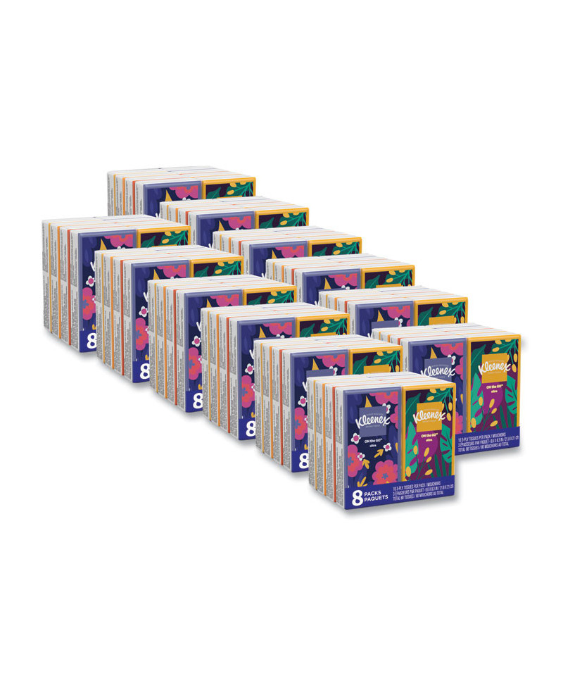 On The Go Packs Facial Tissues, 3-Ply, White, 10 Sheets/Pouch, 8 Pouches/Pack, 12 Packs/Carton