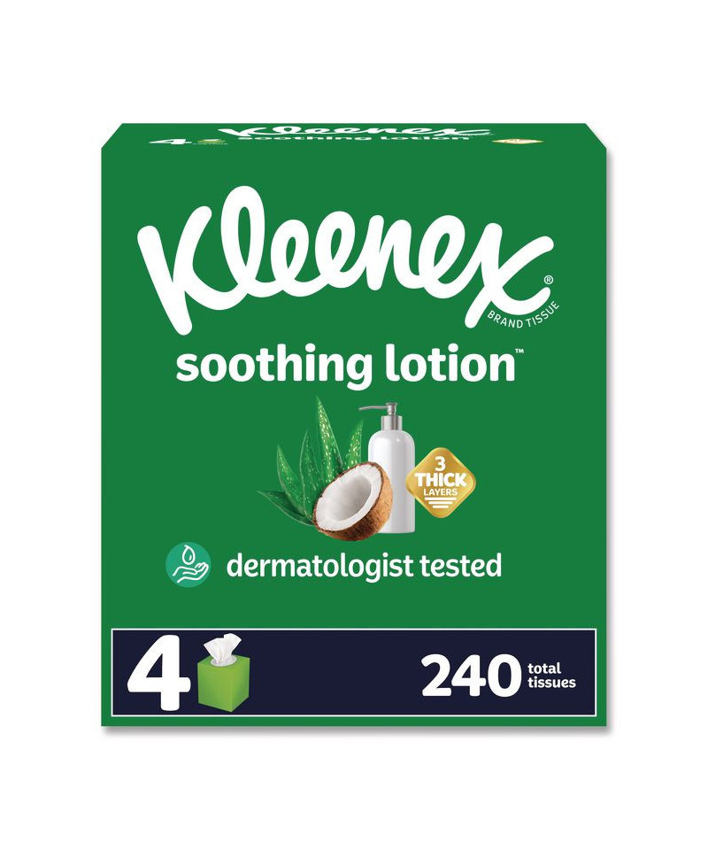Soothing Lotion™ facial tissue features three-layers of soft and strong paper, each infused with a touch of coconut oil, aloe and vitamin E, to nourish skin with daily moisturizers while protecting you from chafing and redness by locking that moisture in, no matter how many times you reach for a tissue during the day. These ultra-soft, lotion-infused tissues are ideal when suffering from colds and allergies, and they may be the only tissues for those who suffer with sensitive skin throughout the year.