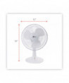 12" 3-Speed Oscillating Desk Fan, Plastic, White