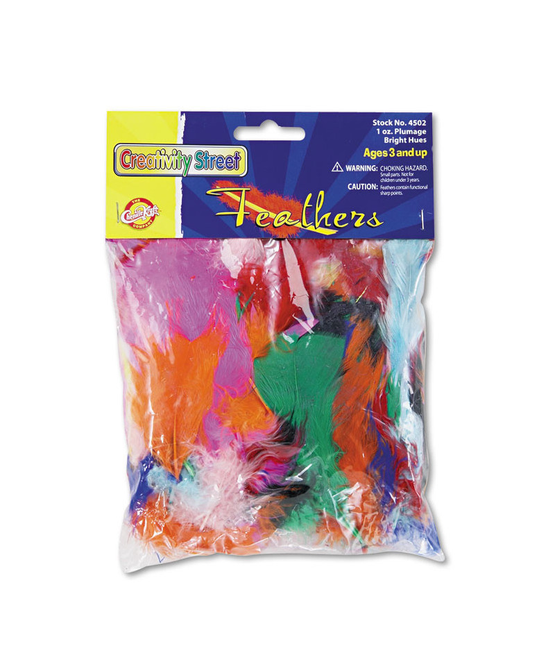 Chenille Kraft Bright Hues Feather Assortment, Natural Turkey Plumage, 1 oz, Approximately 325/Pack