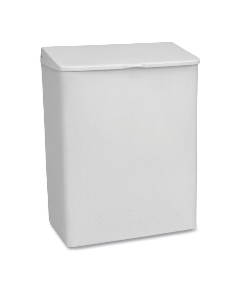 Provide a discreet place for guests to dispose of feminine hygiene products with this wall-mounted disposal unit. White enamel finish lends a crisp, clean look and the flip-up lid keeps items neatly tucked away. Provides access to disposal liners from the bottom, allowing for easy, mess-free removal.